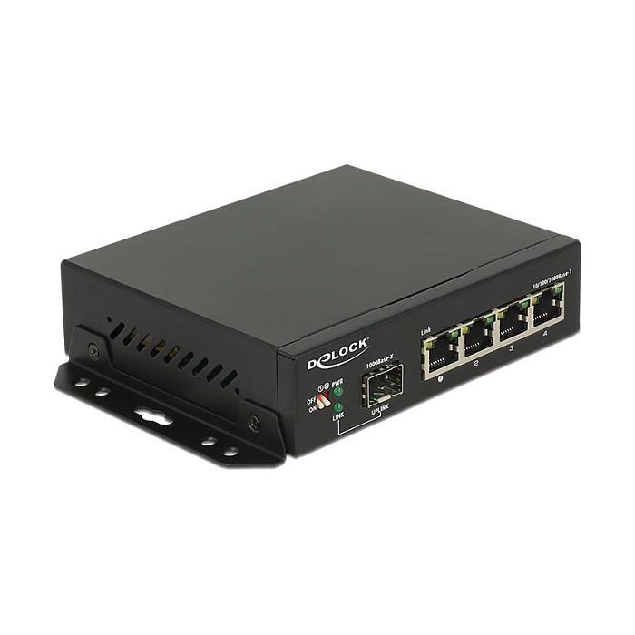 Delock 87704 Switch Gigabit Ethernet 4 Puertos RJ-45 + 1 Puerto SFP, 10/100/1000 Mbps, Montaje en Pared, Negro