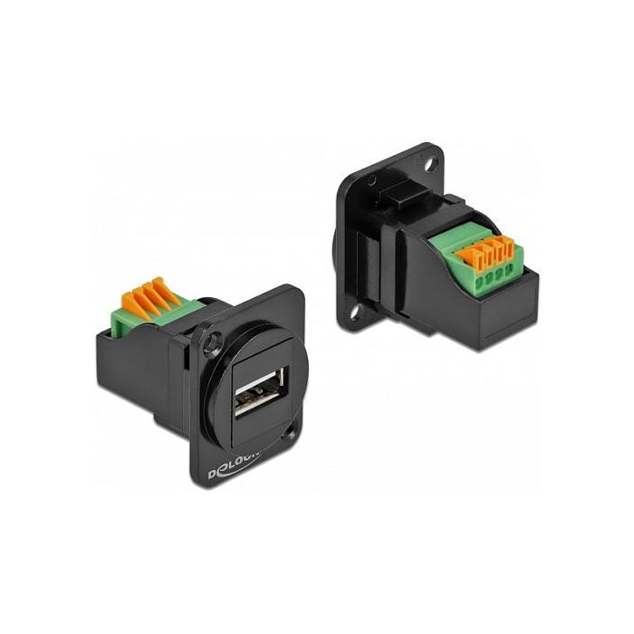 DeLOCK Módulo Type-D USB 2.0 Tipo-A hembra a bloque de terminales, Plano, Negro, USB A, Terminal, Hembra, Plástico