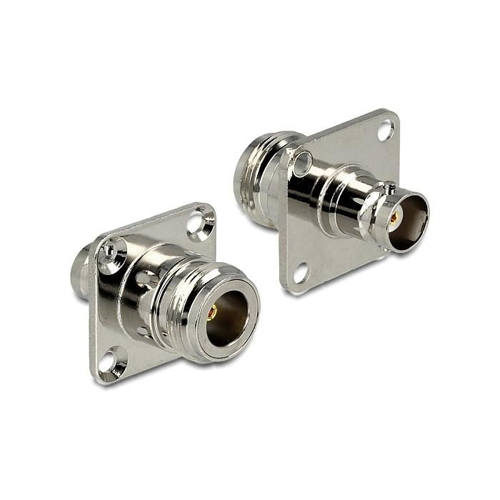 DeLOCK 88839 Adaptador de Conector N Macho a BNC Macho, Chapado en Níquel, Carcasa de Latón, para Montaje en Panel