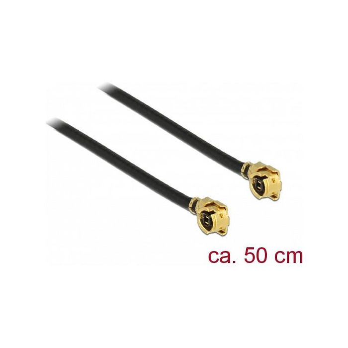 DeLOCK 89611 Cable Antena MHF I (I-PEX) a MHF I (I-PEX) 1.13 mm, 0.5 m / 50 cm, Negro, Dorado, 50 Ω
