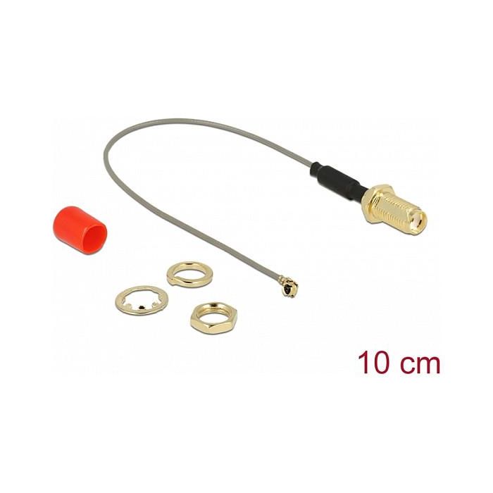DeLOCK 89832 - Cable de antena SMA hembra a conector I-PEX MHF I (I-PEX Inc.), 10cm, 50 Ω, con núcleo de ferrita, gris