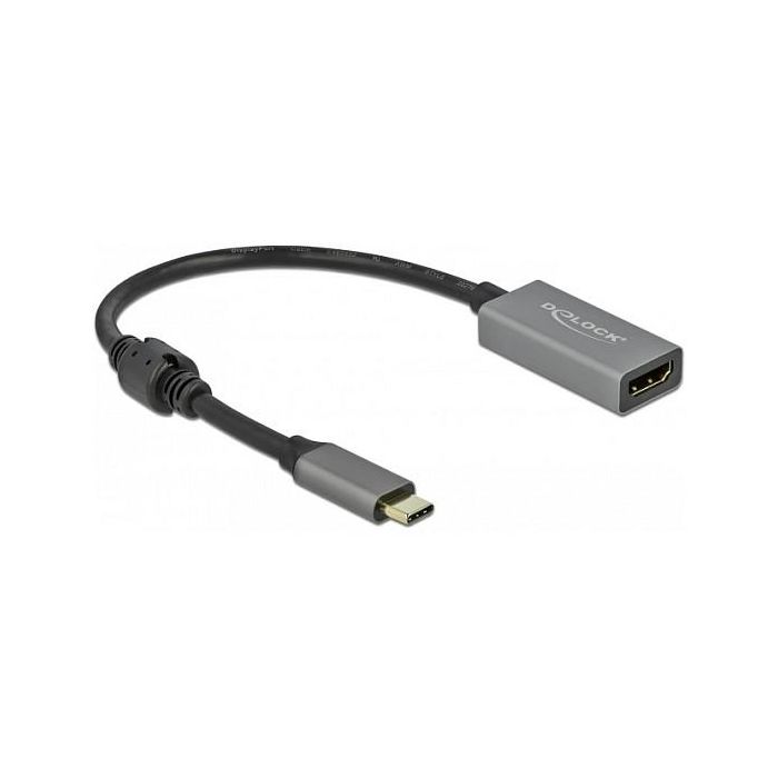 DeLOCK Adaptador Activo USB Type-C a HDMI, DP Alt Mode, 4K Ultra HD a 60Hz, HDR, Longitud de Cable 0.2m, Compatible con Windows y macOS, Negro/Gris