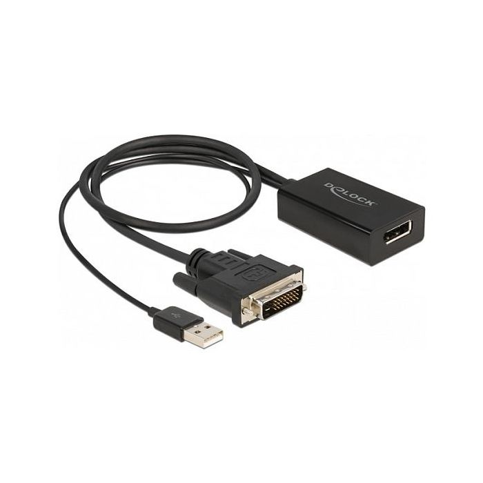 DeLOCK Adaptador DVI macho a DisplayPort 1.2 hembra negro 4K con función HDR 50 cm, 0,5 m, DVI, DisplayPort, Macho, Hembra, Derecho