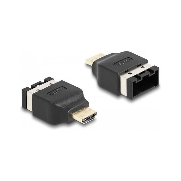 DeLOCK Adaptador HDMI de automóvil HDMI-E hembra a HDMI-A macho 4K 60 Hz, HDMI-A, HDMI-E, Negro