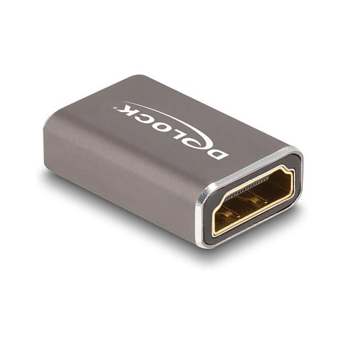 DeLOCK Adaptador HDMI hembra a hembra 8K 60 Hz gris metal, HDMI, HDMI, Gris