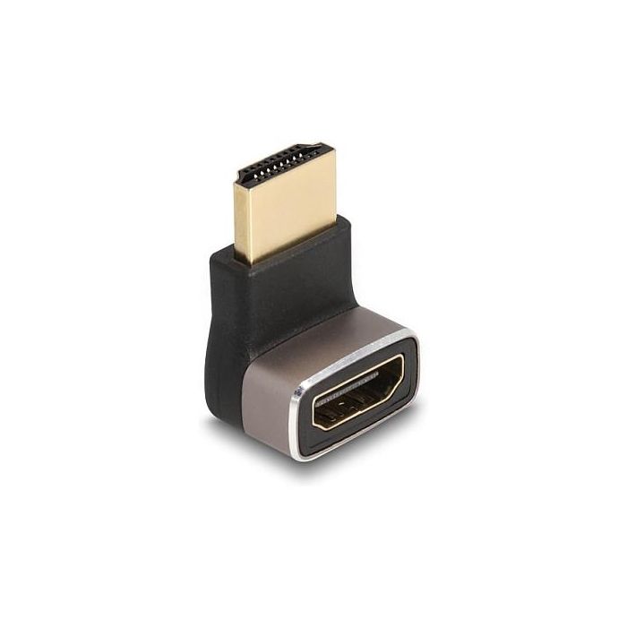 DeLOCK Adaptador HDMI macho a hembra 90° acodado hacia abajo 8K 60 Hz gris metal, HDMI, HDMI, Negro, Gris