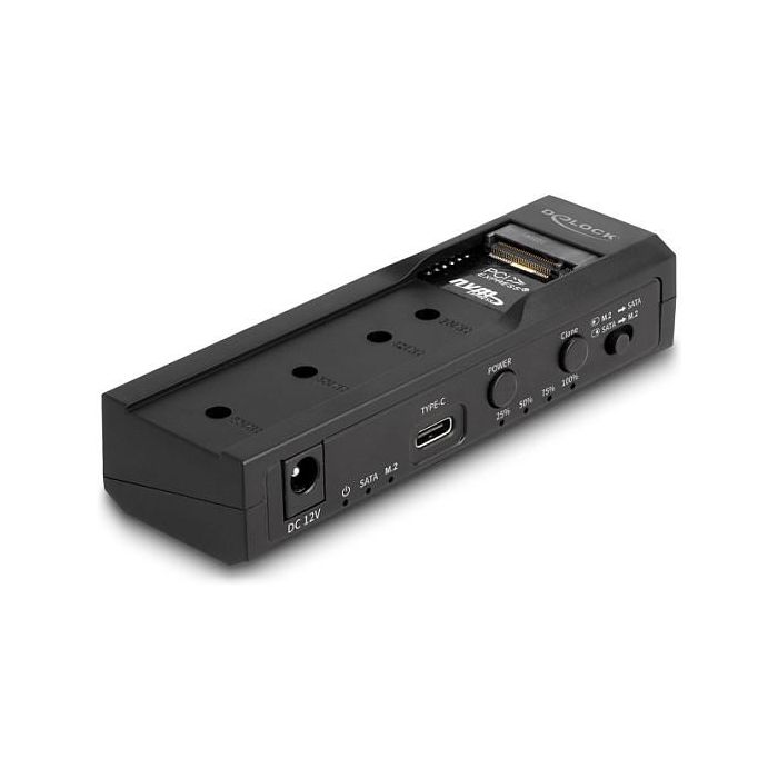 DeLOCK Convertidor USB Type-C para 1 x SSD M.2 NVMe + 1 x SATA SSD/HDD con función de clonación, SSD, M.2, Serial ATA III, 2.5,M.2, USB 3.2 Gen 2 (3.1 Gen 2) Type-C, Negro, 6 Gbit/s