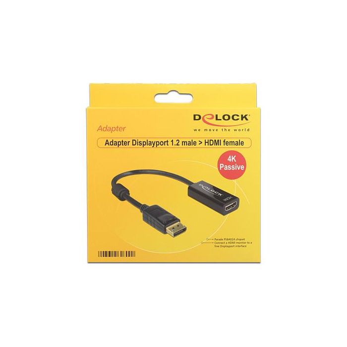 DeLOCK 62609 Cable Adaptador DisplayPort 1.2 Macho a HDMI Hembra Negro 4K Pasivo 0.2m