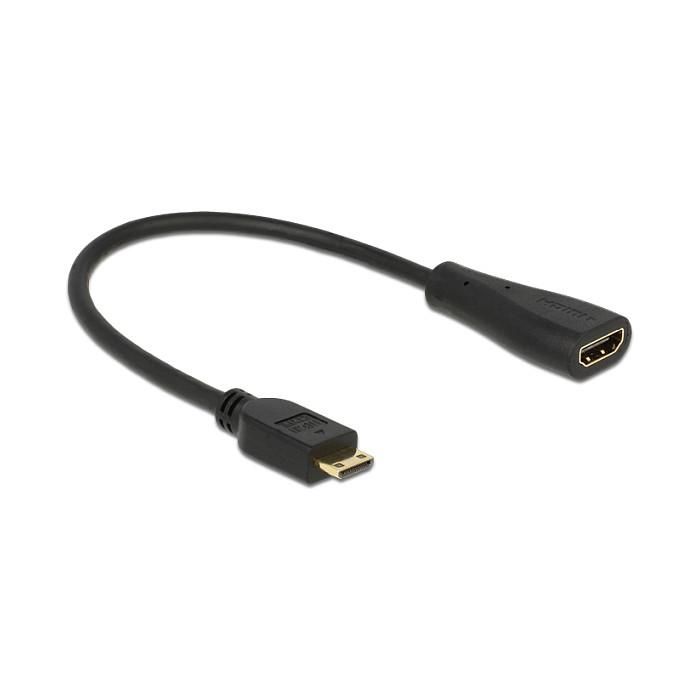 DeLOCK 0.23m mini-HDMI/HDMI, 0,23 m, HDMI Type C (Mini), HDMI tipo A (Estándar), 1920 x 1200 Pixeles, Negro