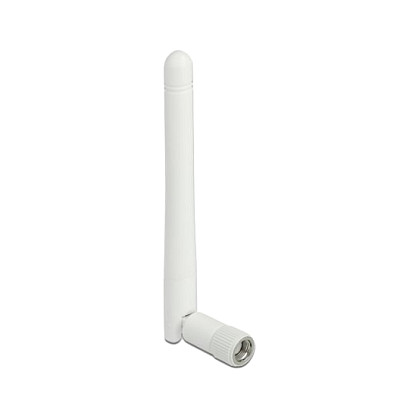 DeLOCK Antena WLAN 802.11 b/g/n macho RP-SMA 2 dBi omnidireccional con unión de inclinación blanco, 2 dBi, 2.400 - 2.500 GHz, IEEE 802.11b, IEEE 802.11g, IEEE 802.11n, 50 Ω, Antena omnidireccional, RP-SMA