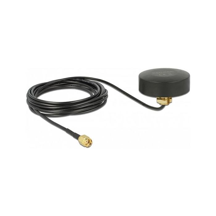 DeLOCK Antena WLAN 802.11 b/g/n, RP-SMA macho, 2 dBi omnidireccional fija, con cable RG-174 de 1.5 m, para exterior, negro