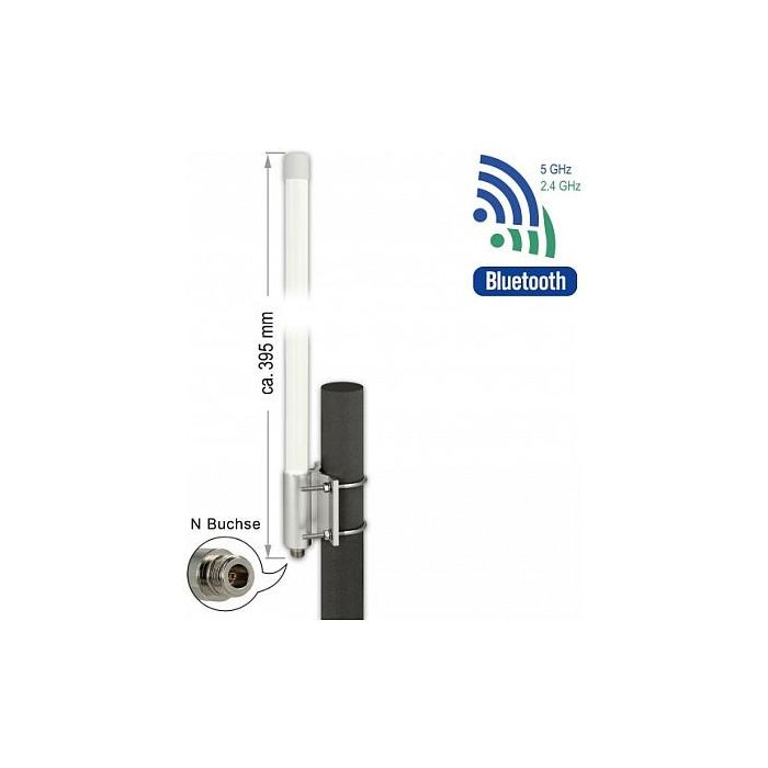 DeLOCK WLAN Banda Dual 802.11 ac/ax/a/b/g/n Antena hembra N 6,2 - 8,0 dBi 39.5 cm omnidireccional con soporte fijo de pared y montaje en poste para exteriores blanco, 8 dBi, 2400 - 5875 GHz, 6,2 / 8 dBi, 50 Ω, 360°, 17°