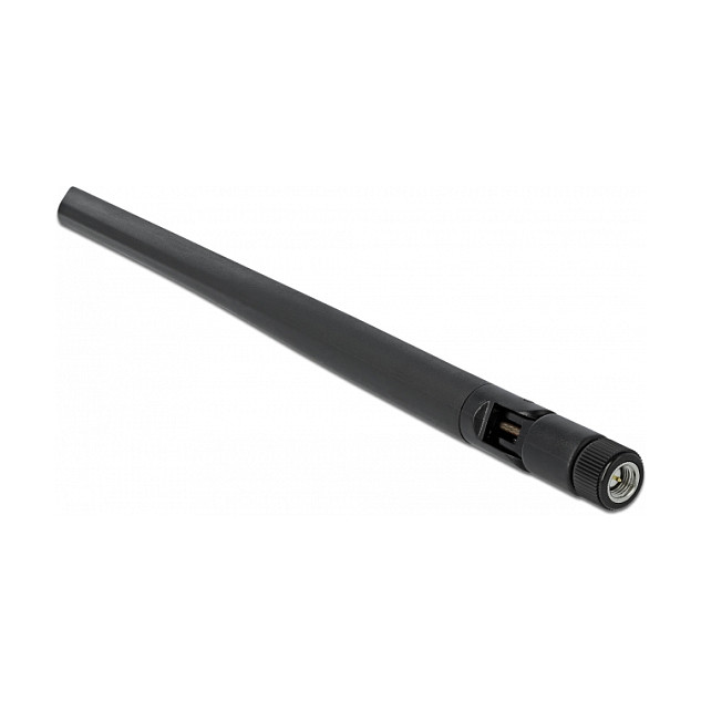 DeLOCK Antena WLAN 802.11 a/ax/a/b/g/n macho RP-SMA 5 dBi 20 cm omnidireccional con junta de inclinación flexible y superficie de goma negra, 5 dBi, 2.4 - 2.5, 5.15 - 5.85 GHz, IEEE 802.11a, IEEE 802.11ax, IEEE 802.11b, IEEE 802.11g, IEEE 802.11n, 50 Ω, Antena omnidireccional, RP-SMA