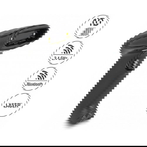 DeLOCK Escáner de código de barras 1D Laser para 2,4 GHz, Bluetooth o USB, Lector de códigos de barras portátil, 1D, Laser, Code 128, Code 39, Discrete 2 of 5, EAN-13, EAN-8, ISBN, 752 x 480 Pixeles, 30 cm