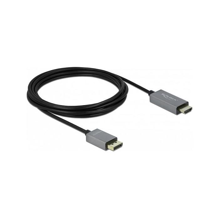DeLOCK Cable Activo DisplayPort 1.4 a HDMI, 4K 60Hz HDR, 3m, Longitud 3 Metros, 18 Gbit/s, 3840x2160, Conectores DP y HDMI Macho, Negro/Gris