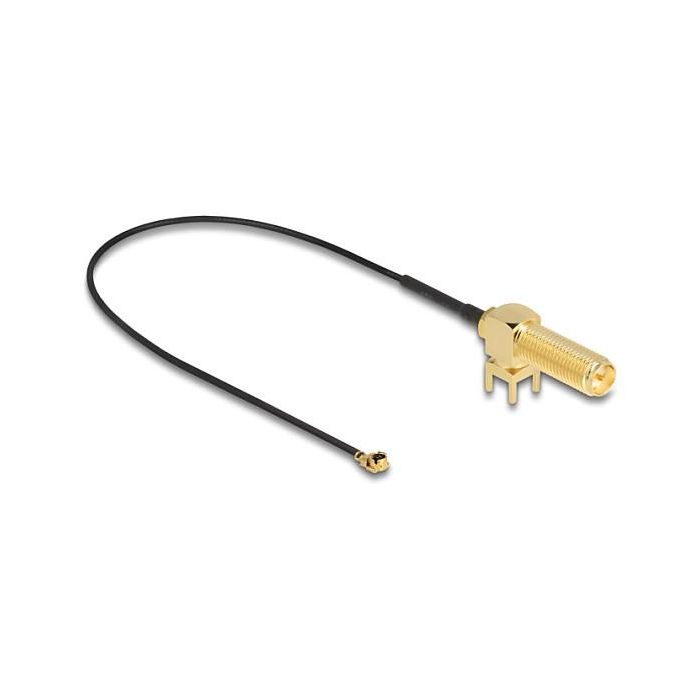 DeLOCK Antena Cable RP-SMA 90° PCB mampara hembra a I-PEX Inc., MHF I macho 1.13 25 cm longitud de hilo 15 mm, 0,25 m, RP-SMA, I-PEX MHF1, Negro