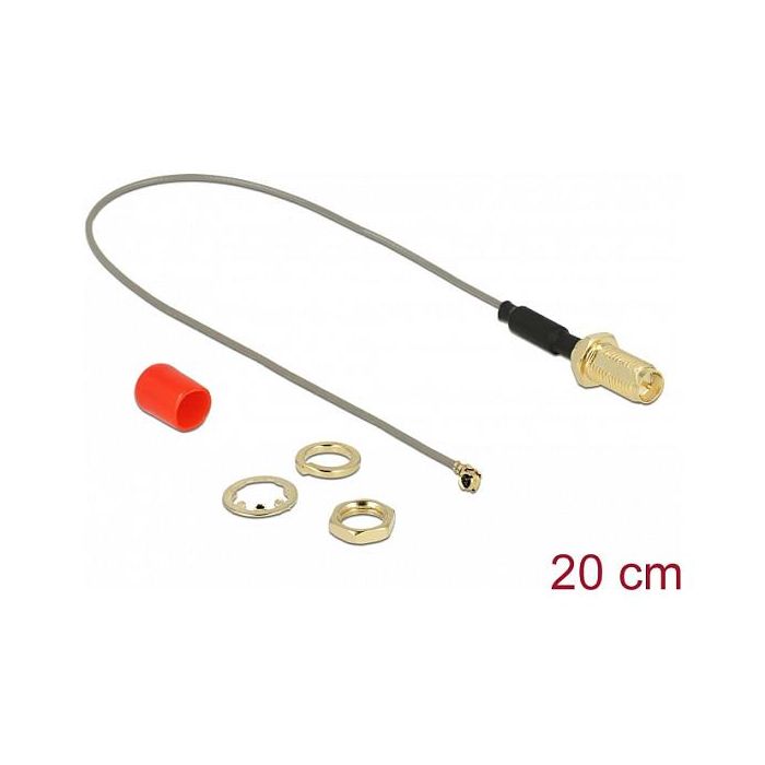 DeLOCK Cable Antena RP-SMA Hembra a MHF I Conector 1.13 con Ferrita, 20 cm, Gris, Referencia 89831