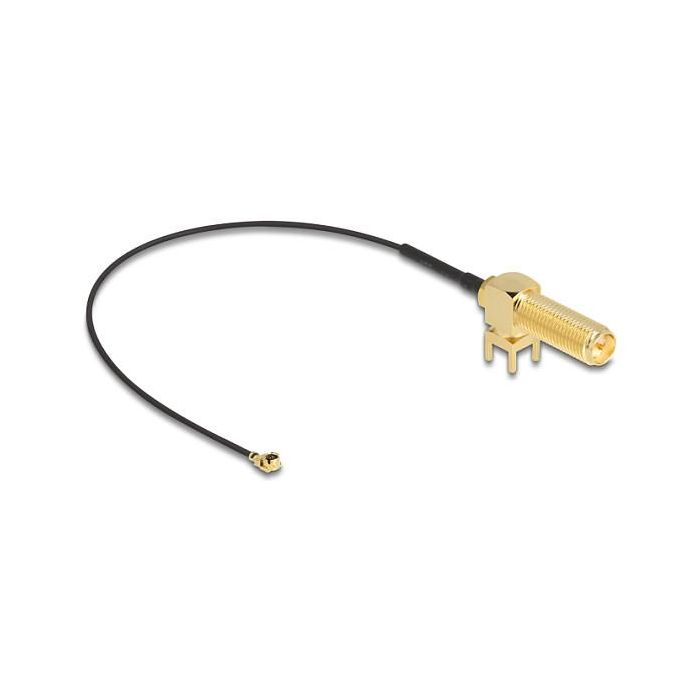 DeLOCK Antena Cable RP-SMA 90° PCB mampara hembra a I-PEX Inc., MHF I macho 1.13 15 cm longitud de hilo 15 mm, 0,15 m, RP-SMA, I-PEX MHF1, Negro