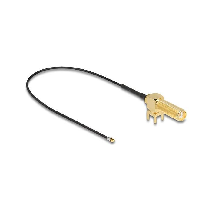 DeLOCK Antena Cable SMA 90° PCB mampara hembra a I-PEX Inc., MHF 4L macho 1.13 25 cm longitud de hilo 15 mm, 0,25 m, SMA, I-PEX MHF4, Negro