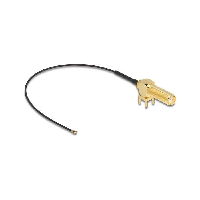 DeLOCK Antena Cable SMA 90° PCB mampara hembra a I-PEX Inc., MHF 4L macho 1.13 15 cm longitud de hilo 15 mm, 0,15 m, RP-SMA, I-PEX MHF4, Negro