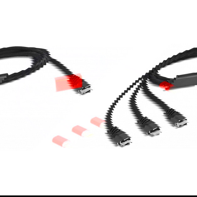 DeLOCK Cable de carga USB 3 en 1 USB Type-C a Lightning/Micro USB/USB Type-C 1 m negro/rojo, 1 m, USB C, USB C/Micro-USB B/Lightning, USB 2.0, Negro, Rojo