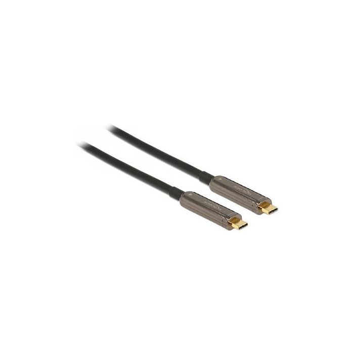DeLOCK Cable de Vídeo Óptico Activo USB-C a USB-C, 4K 60Hz, 20 Metros, USB 3.2 Gen 1, 21.6 Gbit/s, Negro/Plata