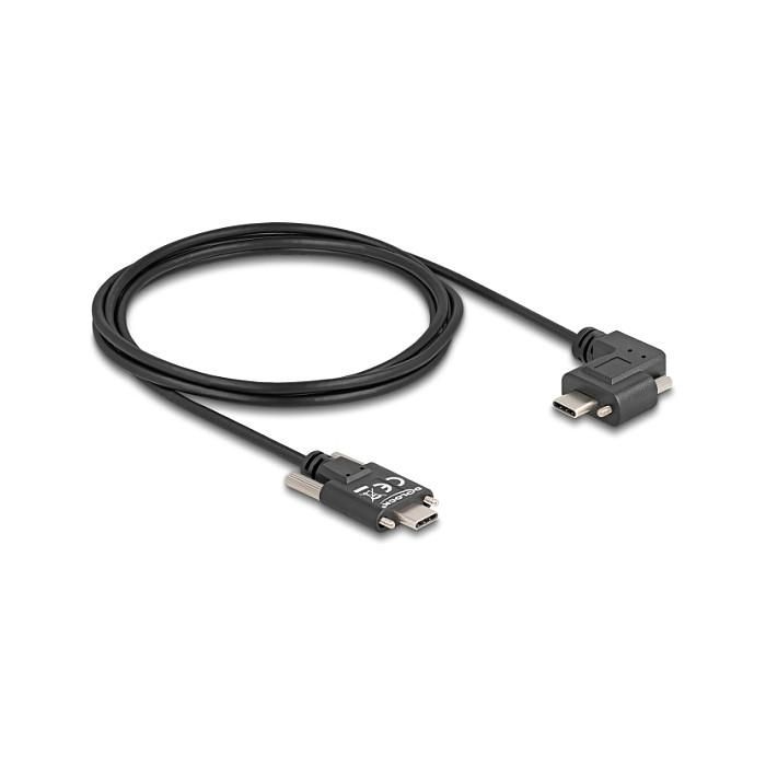 DeLOCK Cable USB 2.0 USB Type-C macho con tornillos a USB Type-C macho con tornillos acodado a la izquierda/la derecha PD 3.0 60 W 2 m, 2 m, USB C, USB C, USB 2.0, 0,48 Gbit/s, Negro