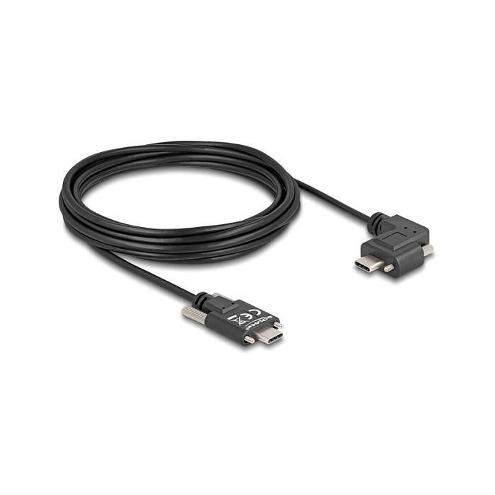 DeLOCK Cable USB 2.0 USB Type-C macho con tornillos a USB Type-C macho con tornillos acodado a la izquierda/la derecha PD 3.0 60 W 5 m, 5 m, USB C, USB C, USB 2.0, 0,48 Gbit/s, Negro