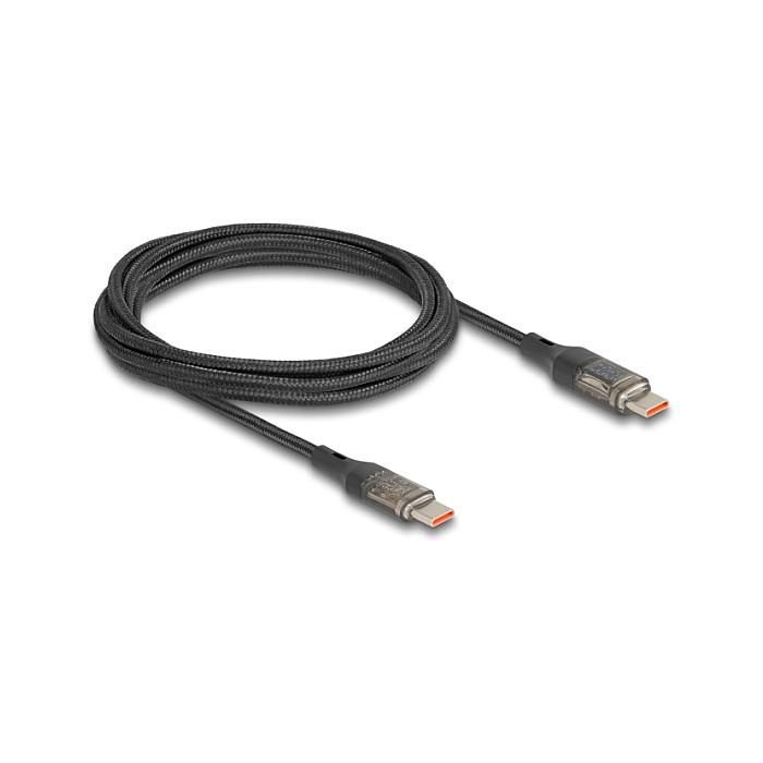 DeLOCK Cable de de datos y carga rápida USB 2.0 USB Type-C macho a macho PD 3.0 100 W con indicación de potencia transparente 2 m, 2 m, USB C, USB C, USB 2.0, 0,48 Gbit/s, Negro
