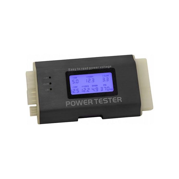 DeLOCK Comprobador de Fuentes de Alimentación 18159, Negro y Blanco