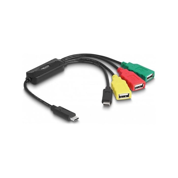 DeLOCK Concentrador de cables USB 2.0 de 4 puertos USB Type-C a 3 x USB-A hembra + 1 x USB-C macho, USB Type-C, 3 x USB-A female + 1 x USB-C, 0,3 m, Multicolor
