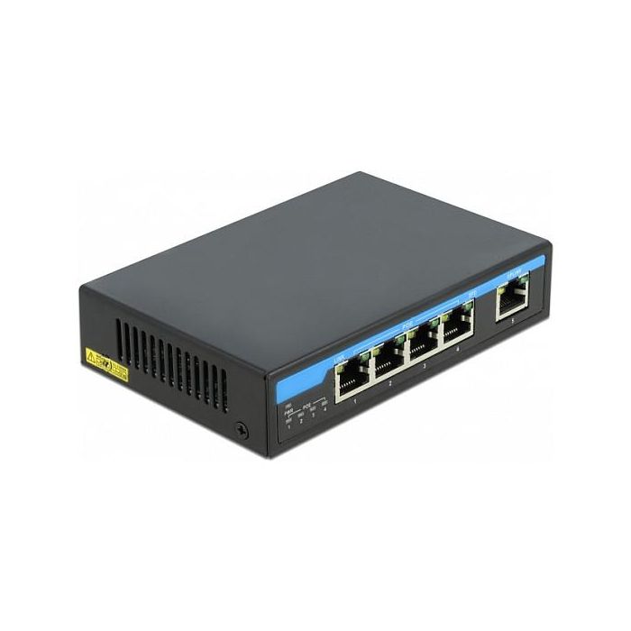 DeLOCK Conmutador Ethernet Gigabit de 4 puertos PoE + 1 RJ45, Gigabit Ethernet (10/100/1000), Energía sobre Ethernet (PoE)