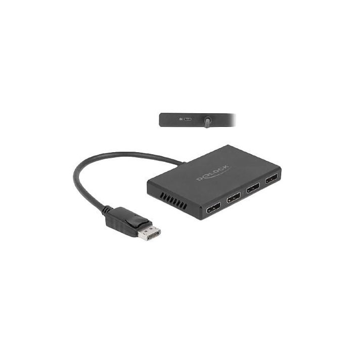 DeLOCK Divisor DisplayPort 1.4 1 x Entrada DisplayPort > 4 x Salida DisplayPort, DisplayPort, 4x DisplayPort, 7680 x 4320 Pixeles, Negro, Plástico, 1.4/2.2