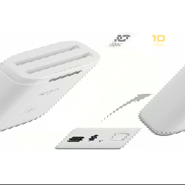 DeLOCK Estación de acoplamiento USB Type-C 3.2 para 2 x 2.5″ SATA HDD/SSD con función de clonación, Unidad de disco duro, SSD, SATA, 2.5", USB 3.2 Gen 2 (3.1 Gen 2) Type-C, Blanco, Plástico