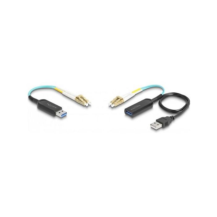 DeLOCK USB 10 Gbps Tipo-A Extender Set sobre cable LC Duplex, 0,2 m, USB A, 10 Gbit/s, Negro