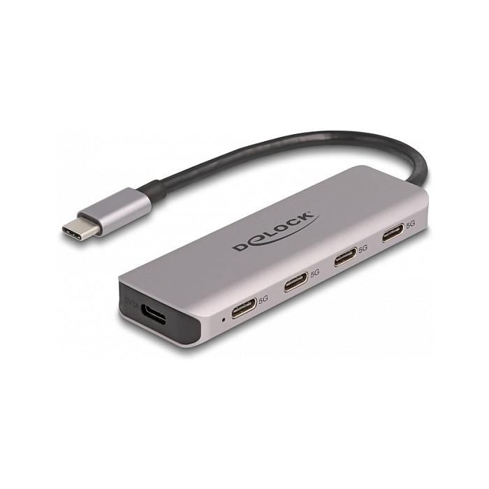 DeLOCK USB 5 Gbps Concentrador USB Type-C de 4 puertos con conector USB Type-C, USB 3.2 Gen 1 (3.1 Gen 1) Type-C, USB 3.2 Gen 1 (3.1 Gen 1) Type-C, 5000 Mbit/s, Gris, Metal, Cable redondo