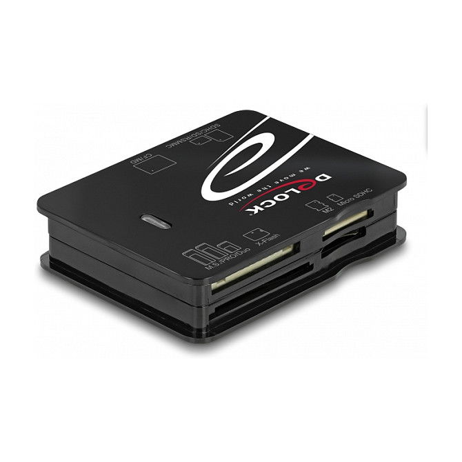 DeLOCK Lector de tarjetas USB 2.0 para tarjetas de memoria CF/SD/Micro SD/MS/xD/M2, CF, MMC, MS Duo, MS Micro (M2), MicroSD (TransFlash), SD, xD, Negro, 480 Mbit/s, USB 2.0, 43,5 mm, 56,6 mm
