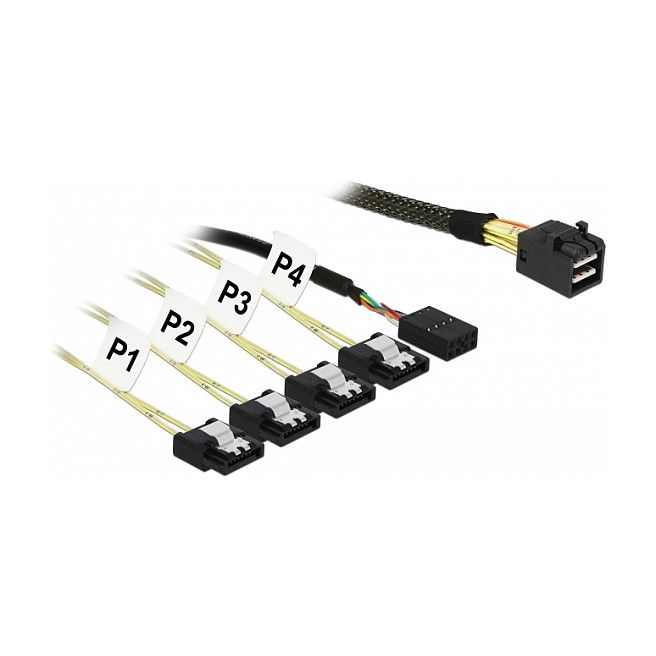 DeLOCK 85732, 1 m, Mini SAS HD SFF-8643, 4x SATA 6 Gb/s 7 Pin + 8 pin sideband, Derecho, Derecho, Macho/Hembra