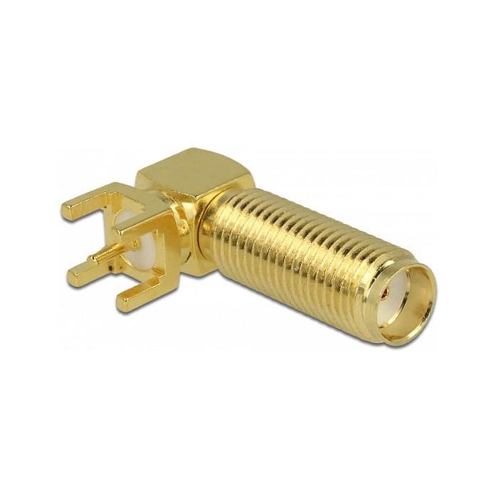 DeLOCK SMA Buchse 90° PCB Gewindelänge 16mm, Conector SMA F/M Dorado 0-6000 MHz 50Ω 500V, Referencia 65848