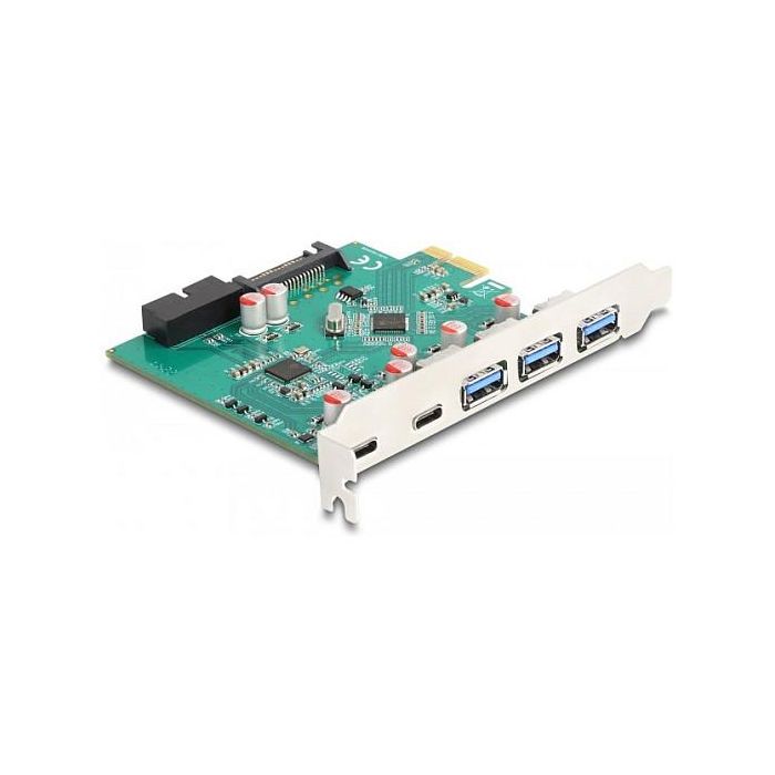 DeLOCK Tarjeta USB 5 Gbps PCI Express x1 a 3 x externo Tipo-A + 2 x externo USB Type-C hembra y 1 x interno de 19 pines USB conector de pines macho, PCIe, SATA, USB 3.2 Gen 1 (3.1 Gen 1), USB Tipo C, Femenino, PCIe 2.0, Multicolor