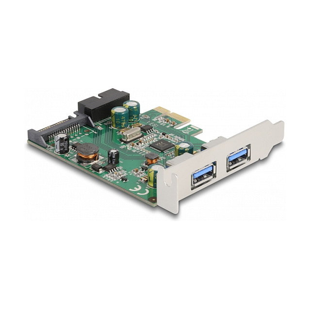 DeLOCK Tarjeta PCI Express x1 a 2 x USB 3.2 Gen 1 Tipo-A externo + 1 x cabecera de pines USB interna de 19 pines macho - Factor de forma de perfil bajo, PCIe, USB 3.2 Gen 1 (3.1 Gen 1), Perfil bajo, PCIe 2.0, SATA de 15 pines, Plata