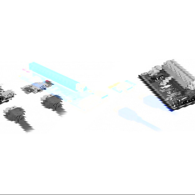 DeLOCK Tarjeta Riser PCI Express x1 a x16 con cable USB de 60 cm, PCIe, PCIe, USB 3.2 Gen 1 (3.1 Gen 1), Negro, Azul, Gris, PC, 0,8 Gbit/s, 128,2 mm