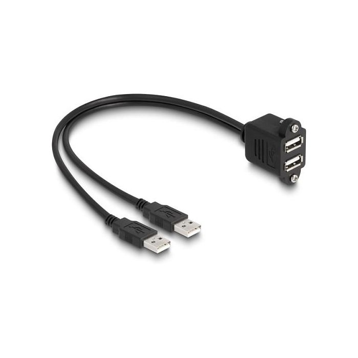 DeLOCK USB 2.0 Cable 2x USB Tipo-A Macho a 2x USB Tipo-A Hembra con Tuercas de Roscada para Integración, 1 m, Negro