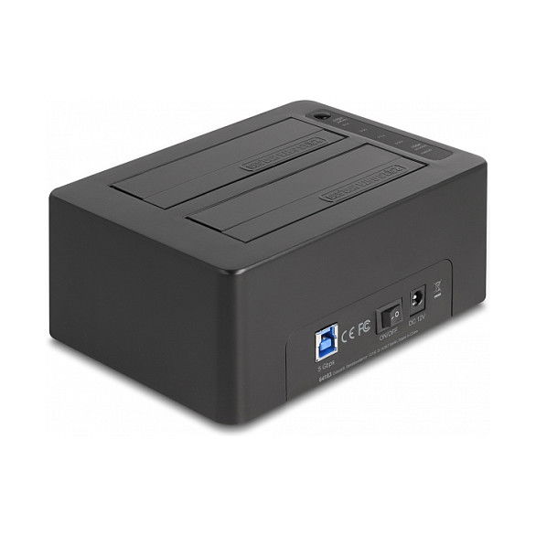 DeLOCK Estación de acoplamiento dual USB para 2 x SATA HDD/SSD con función de clonación y lector de tarjetas + puerto USB adicional, Unidad de disco duro, SSD, Serial ATA III, 2.5,3.5", USB 3.2 Gen 1 (3.1 Gen 1) Type-B, Negro, Plástico