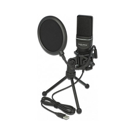 DeLOCK Conjunto de micrófono de condensador USB - para difusión de contenido multimedia, juegos y voces, Micrófono para PC, -47 dB, 20 - 20000 Hz, 2200 Ω, 16 bit, 44,1 kHz