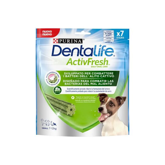 Este snack dental de Purina está diseñado específicamente para perros de raza pequeña. Su fórmula avanzada con espirulina natural y miel combate eficazmente las causas del mal aliento, proporcionando una aliento fresco y agradable. Además, su textura ayuda a reducir la acumulación de sarro, promoviendo la salud bucal de tu mascota. Ideal para el cuidado diario de la higiene dental de tu perro.