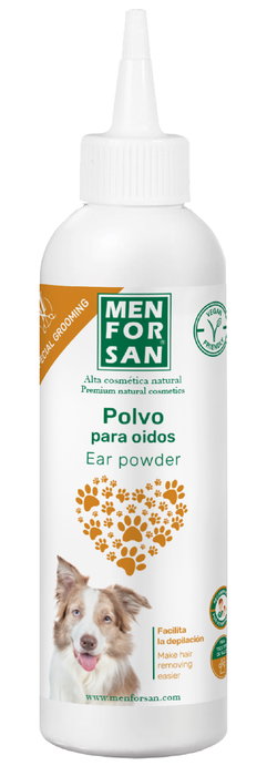 - Observaciones: POLVO PARA OIDOS: Polvo especial para absorber y secar el exceso de humedad de los oídos de las mascotas. Alivia la irritación, elimina el mal olor e inhibe el desarrollo de bacterias. Facilita la eliminación de los pelos en el canal auditivo externo.