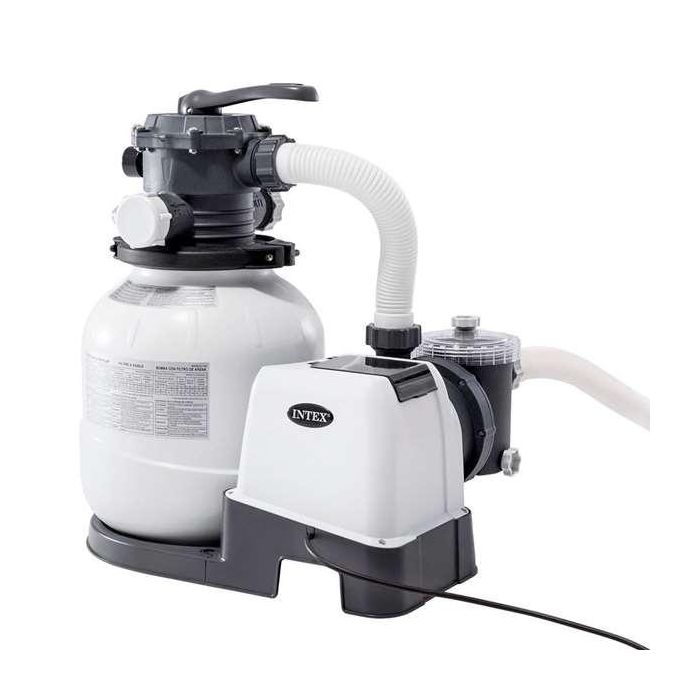 - Sistema de depuración por arena para piscinas de hasta 37.800 litros, capacidad filtración: 7.900 l/h, incorpora el sistema Hydro Aeration System de INTEX