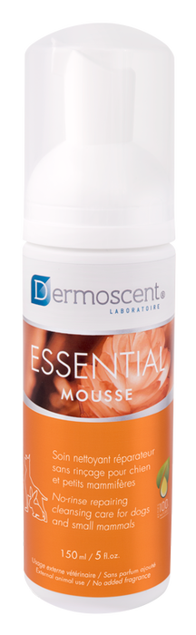 Descubre Essential Mousse®, el primer limpiador reparador sin aclarado, ideal para el uso frecuente en tus mascotas. Formulado específicamente para perros, gatos y pequeños mamíferos como conejos, hurones, cobayas, hámsters, ratas y ratones.