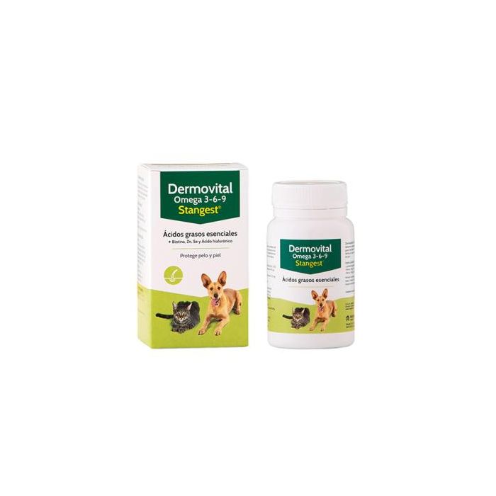 - COMPOSICION Por cápsula: Aceite de salmón: 210 mg, Aceite de borraja: 140 mg, Aceite de oliva: 43 mg, Vitamina E: 7,3 mg, Biotina: 10 mg. Contenido de ácidos grasos por cápsula: Ácido eicosapentanoico (EPA) w3: 37,8 mg, Ácido docosahexanoico (DHA) w3: 25,2 mg, Acido gammalinolénico (GLA) w6: 32,2 mg, Ácido oleico W9: 56,1 mg, Ácido araquidónico: 2,1 mg, Acido erúcico: 3,5 mg. INDICACIONES Incorpora de forma equilibrada los ácidos grasos esenciales para la dieta mediante: aceite de salmón (w3), aceite de borraja (w6) y de oliva (w9). Es un suplemento indispensable en el crecimiento y protección del pelo, piel y mucosas. La Biotina activa el metabolismo de la piel, pelos y uñas, en perros con s¡ntomas carenciales dérmicos. Infecciones. Alergias. Eczemas. Atop¡as. GATOS Y CACHORROS 1 CAPS AL DIA. PERROS HASTA 15KG 2 CAPSULAS AL DIA, PERROS MAS DE 15KG 3 CAPS AL DIA
